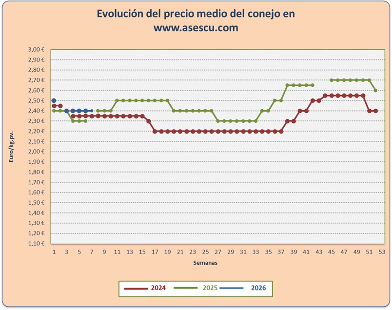 Repetición del precio del conejo esta semana: 1,75 en España, 1,68 en Francia e Italia 1,50 euros por kilo