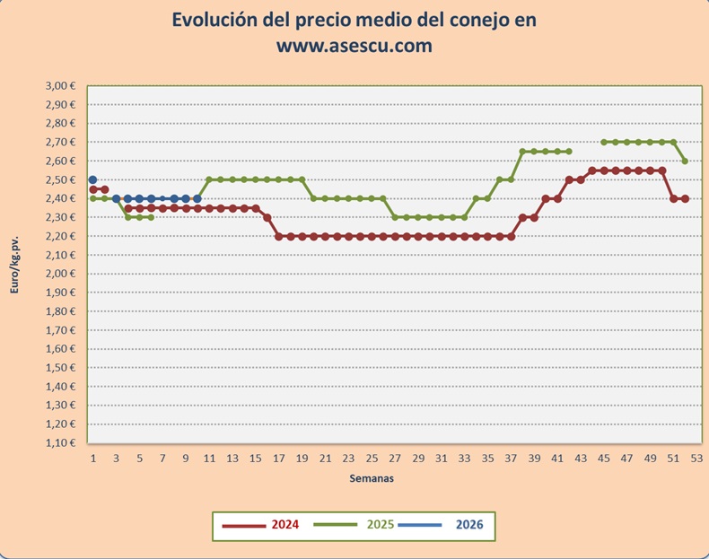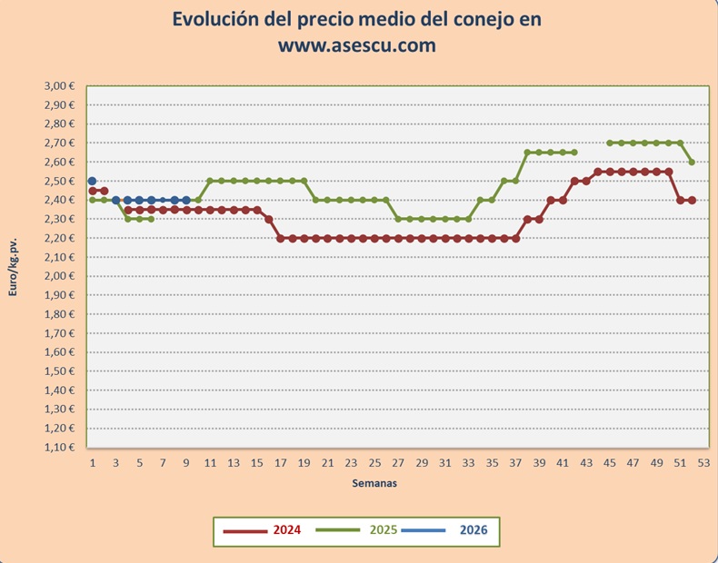 Repetición del precio del conejo esta semana: 1,75 en España, 1,68 en Francia e Italia 1,50 euros por kilo
